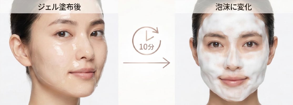 ジェルをお肌にサッと伸ばすだけで、濃密なマイクロバブルが自己発泡。